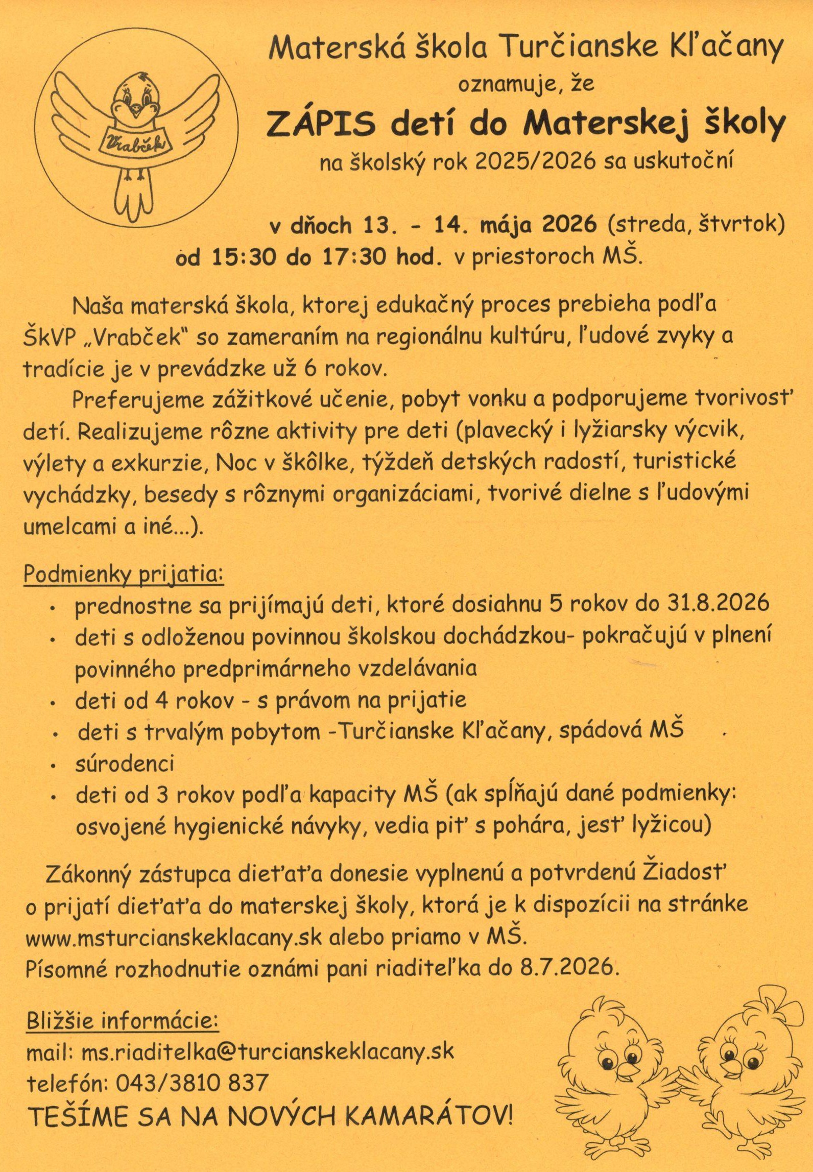 Spolupracujeme so ZŠ Turčianske Kľačany, ZUŠ Dražkovce. Preferujeme zážitkové učenie, pobyt vonku a podporujeme tvorivosť detí. Plánujeme plavecký i lyžiarsky výcvik, rôznorodé výlety a exkurzie.